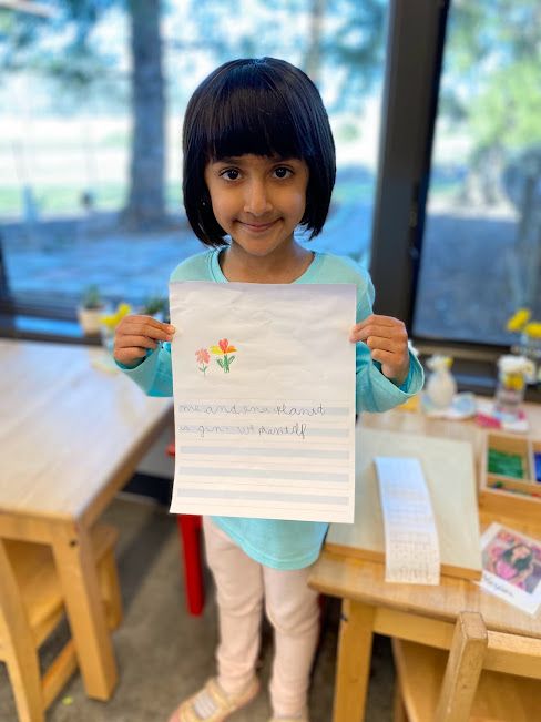 Once a child has a basic understanding of most of the letter sounds, they begin to use a material called the moveable alphabet. Exactly what it sounds like, the moveable alphabet is a box containing sorted wooden letters. Children lay the letters out to write words, and eventually sentences. At this stage we do not expect children to conform to conventional spelling, but rather we allow what is often referred to as inventive spelling. “I love my mom” may look like “I luv mi mom”. Montessori classrooms use many materials to help children strengthen their finger muscles in preparation for the physical act of handwriting beginning at age 3, or arguably even earlier. Our experience has taught us that children are ready to express themselves in writing before they are ready