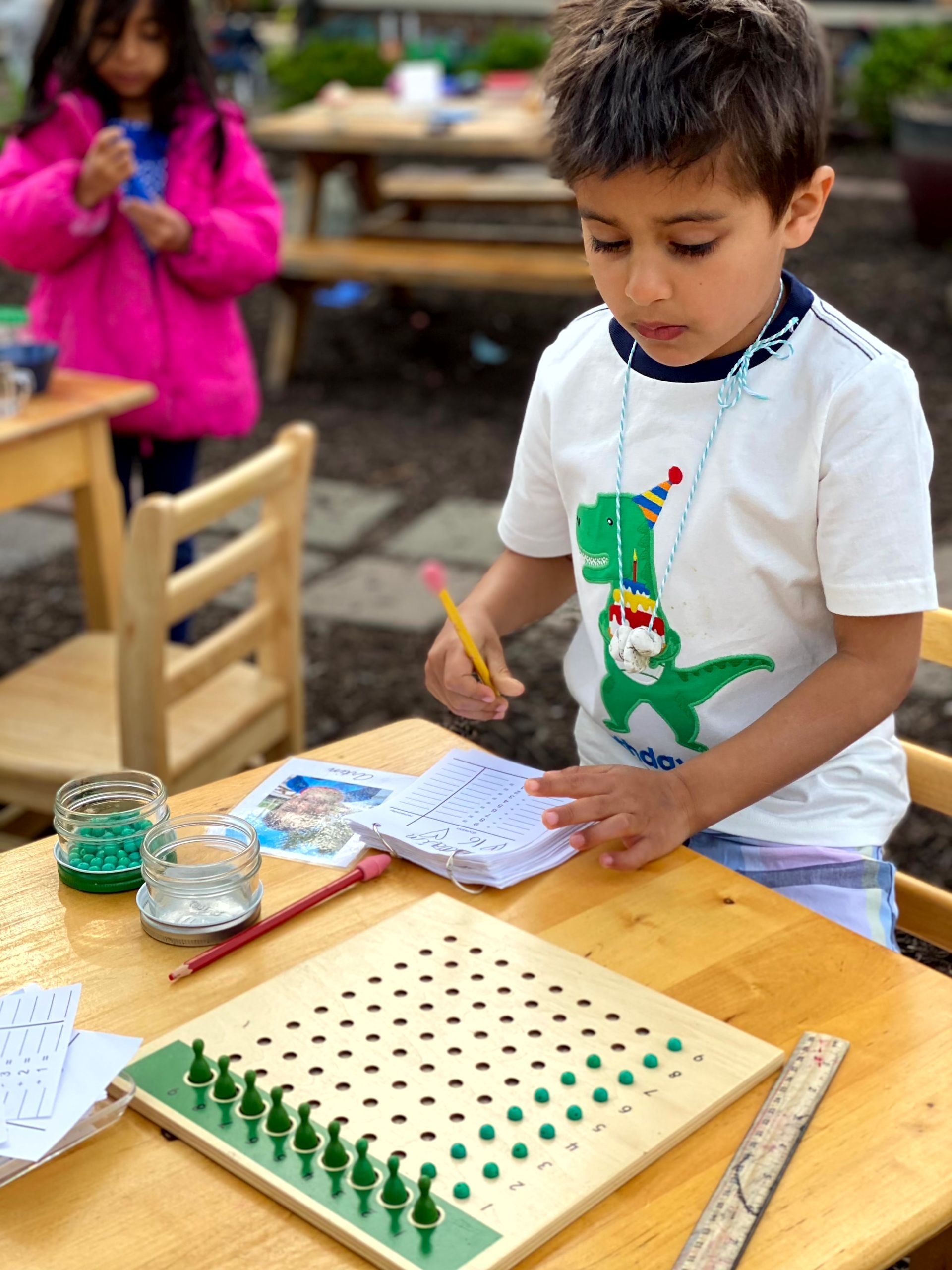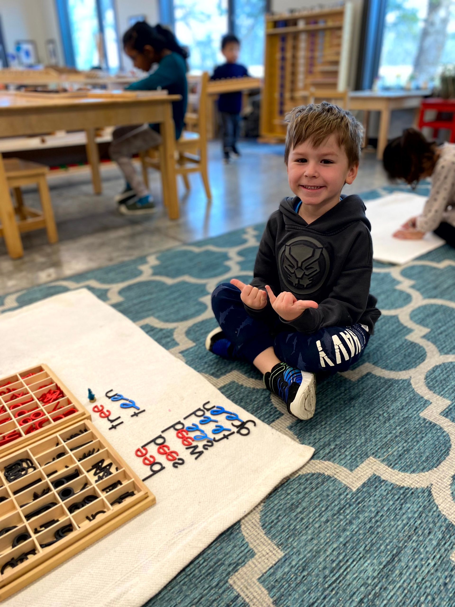 The kindergarten year is a pivotal year.  It's the culmination of the past two, sometimes three years, of acquiring and absorbing knowledge and exploring with the materials. No matter the child's birth order at home, they get to play each role in the classroom: youngest, middle and oldest.  This is the year it all comes together; the year they will become a leader and dive into the deep depth of academic work. As the Montessori classroom functions as a community, the younger children are encouraged to seek out guidance and help from those older leaders in the classroom.  These older children reinforce their academic skills by helping other children, a well-documented way to consolidate knowledge.  This is the year they become the go-to person, the car line helper and the resident expert in the classroom. The kindergarteners lead lessons; resolve conflict; aid in problem solving and build the classorom community with their shared kindness and natural abulity to nuture the younger chidlren.  These organic experiences and interactions with one another only aid the child in developing their self-esteem and confidence.  This is something that cannot be taught, but only fostered through experiences. How wonderful that the Montessori environment does this all naturally!