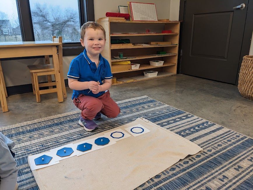 Movement through the materials is based on mastery. It's a pretty simple concept. The child moves to the next material when they've mastered the concept from the one before it. Lessons are presented most often individually. There's no waiting for others to catch up and it's never a problem to repeat the lesson if the concept isn't grasped the first time. The child keeps going at her own pace. All the Montessori materials, or "works", are displayed in a specific order on the shelves. The children retain the order and set goals for working toward the next material internally. Since our classrooms encompass ages 2 1/2 - 6 years, there is a plethora of material present. With everyone in the classroom working on different materials, children are able to see others and their work. The youngest child can see what they can one day accomplish as a kindergartener. The children set their own goals and the motivation is internal. It's not driven by the compliments from adults but by pride in their learning. This allows the child's natural inner drive to be fostered and strengthened, and a love of learning blossoms. It's a life-long skill we aspire our Montessori children to take with them when they leave our community.