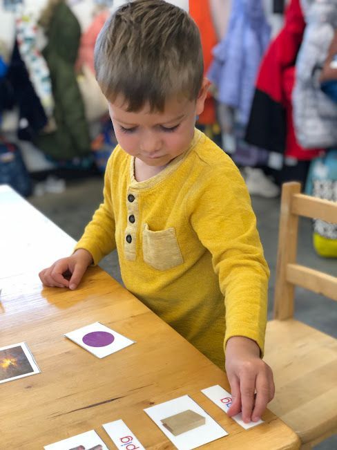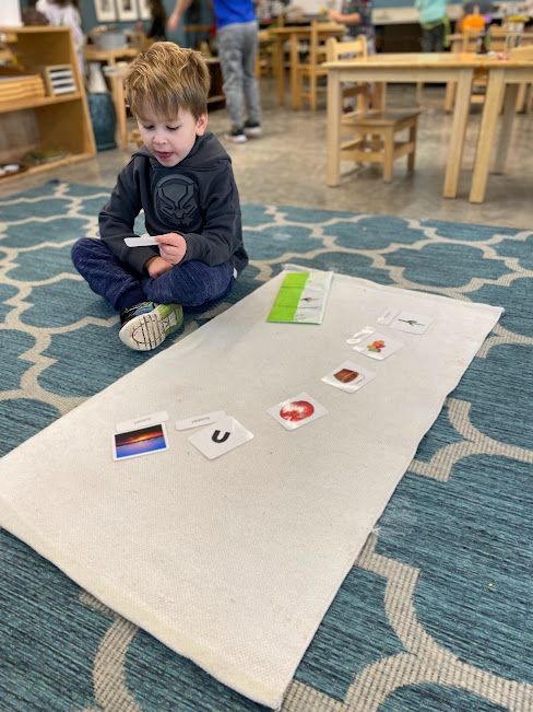 What are nomenclature cards and why do we use them in the Montessori classrooms? The definition of nomenclature is "the devising or choosing of names for things, especially in a science or other discipline." We use these classified cards in our environment to aid the child in vocabulary enrichment and learning the names of objects in the world around them. In the Montessori classroom, we have various sets or groups of nomenclature cards. Initially, we use these sets with just a picture as a form of building vocabulary. The sets are classified into categories of the child's immediate environment, such as names of winter clothing or types of root vegetables; the second category includes the child's outer environment, such as things around town or things on a farm; the third category presents cultural, like botany (parts of a flower or names of spring flowers) or zoology (parts of a horse or names of animals in Africa). The nomenclature cards can be presented individually or with a small group. The various categories are revisited when the child recognizes the names of the items and can read.