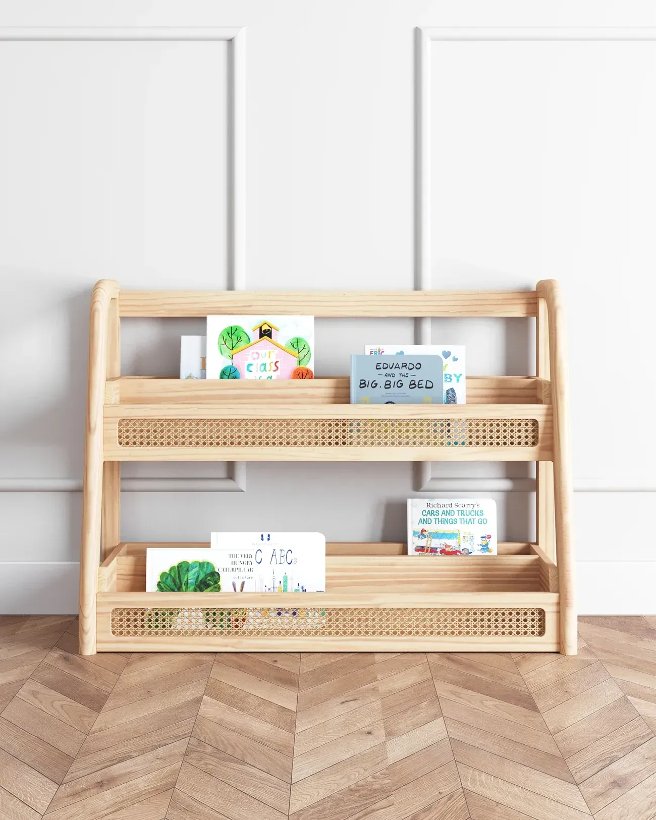 Bookshelves should be low enough so toddlers can reach the books easily, fostering independence and encouraging a habit of self-directed learning. Opt for sturdy, open shelving or a unit with low, wide compartments where the child can easily view the covers of the books. This not only supports independence but also helps children understand the concept of organization.