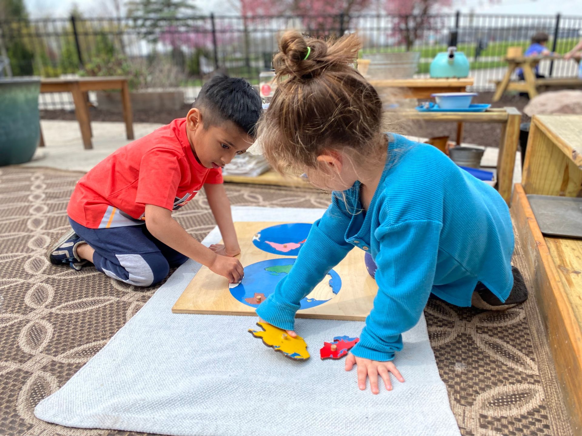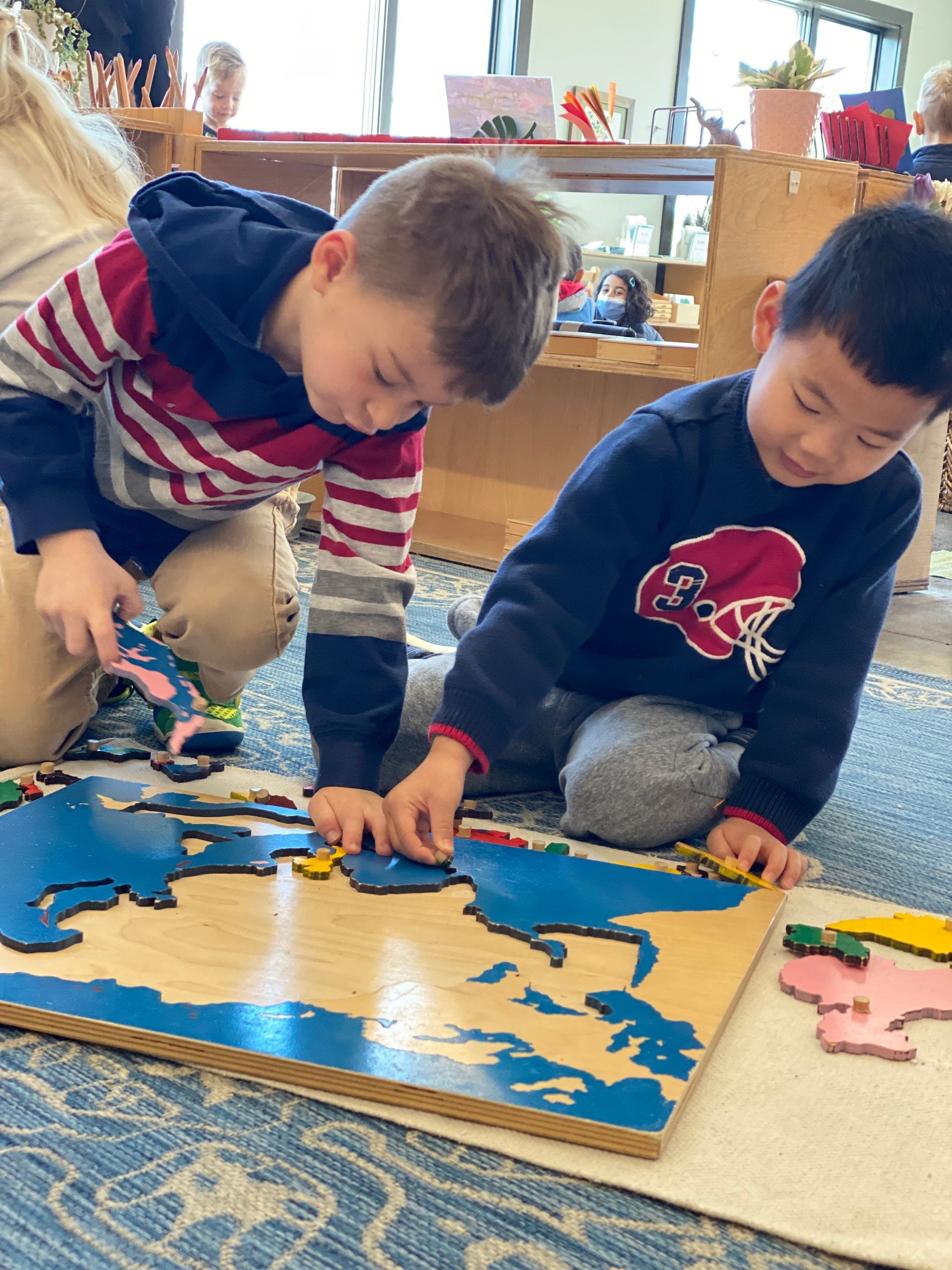 How do we help children foster and develop a sense of “sharing”? Sharing in the Montessori environments means being kind, inviting another to join you or letting someone else know you are finished if they'd like to take a turn. There is only one of each particular material in our classrooms. The environment is purposely designed this way. This means children learn how to wait their turn, speak to someone to let them know they are interested in someone’s chosen material and practice communicating kindly with one another. This also means respect is given to the child using the material as he is allowed to complete his work on his own accord. Waiting your turn will allow the child to practice patience, a much needed real world skill. Speaking up and letting others know of your interest will allow the child to practice communicating her wants, another real life skill. Children practice speaking and conversing kindly and respect for both children and their work is present. Sharing, in the common understanding of the word, happens naturally in the Montessori environments. Children may invite an interested child to come watch their work or let someone who is waiting for a turn know that the material is now available and back on the shelf. Sharing and being kind, is evident when a child invites another to join together for work on a Puzzle Map or to sit side-by-side while a book is read. These are the sweetest moments to witness in a classroom. It’s not forcing another child to give you what you are demanding, when you demand it; it’s knowing to wait patiently and communicate kindly. Our world would be so much more enhanced with grace if we all practiced this as naturally as the children do!