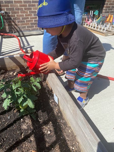 - Tend the garden: have child size tools and gloves. The children love to till the dirt, pull weeds and investigate the growth of the plants!