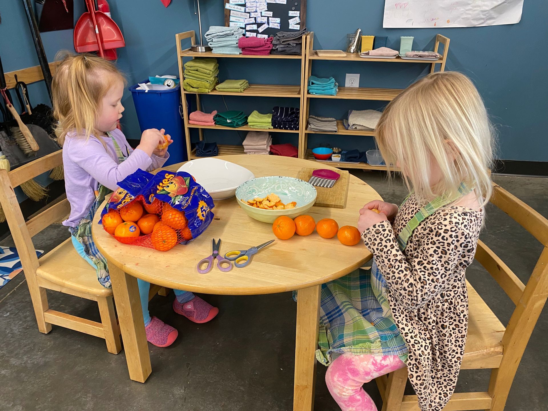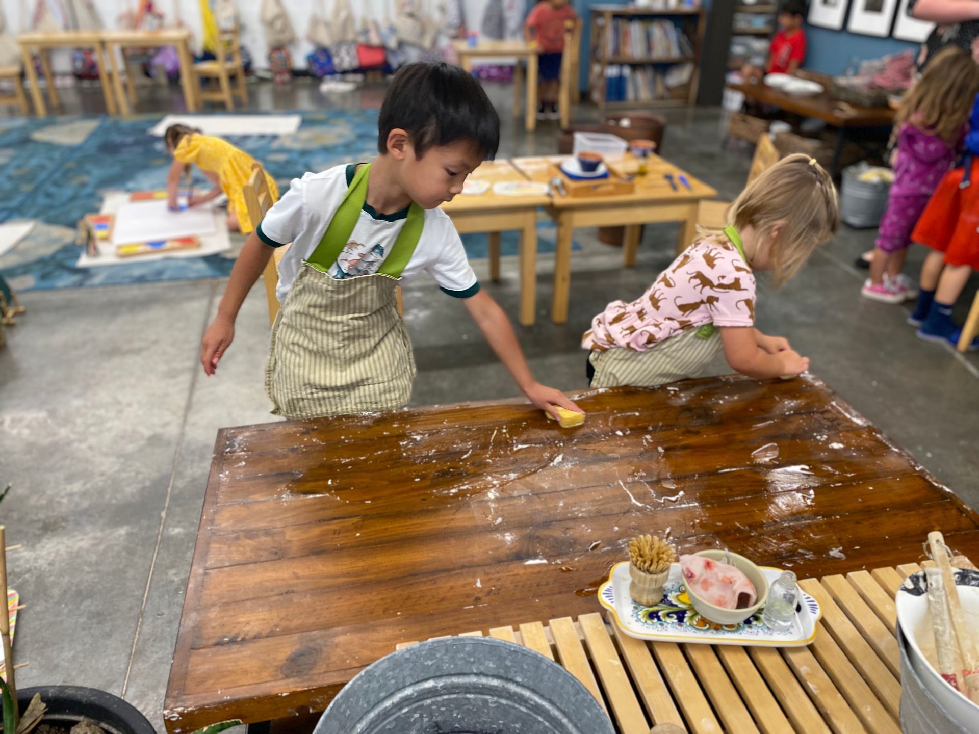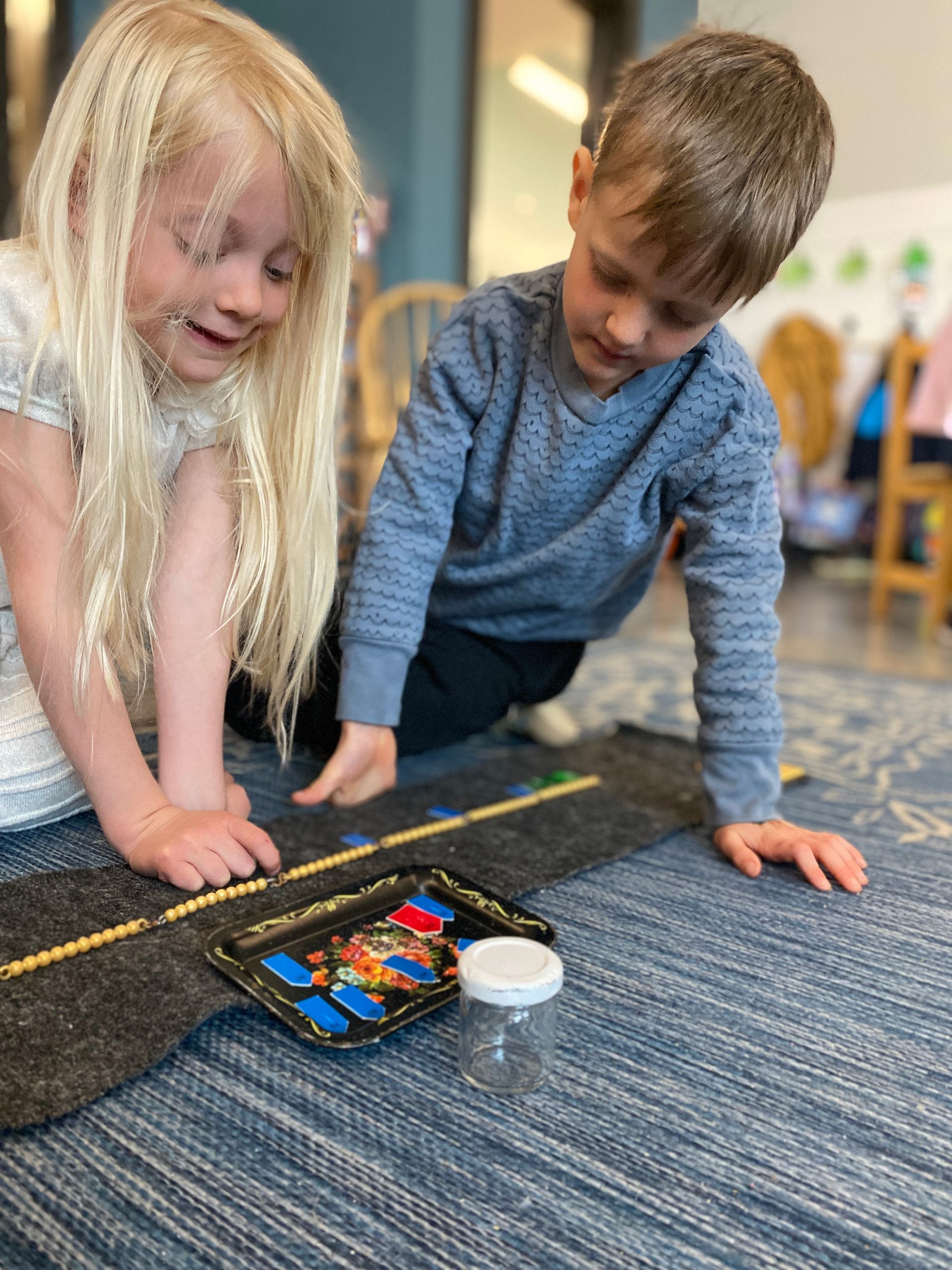 Children who are new to the class are fortunate enough to be surrounded by helpful peer mentors. Children often learn best from one another, and they seek to do so naturally. First and second year students watch as the older children enjoy advanced, challenging work, and this inspires them. They look to the older children for guidance, and the older children are happy to provide it.