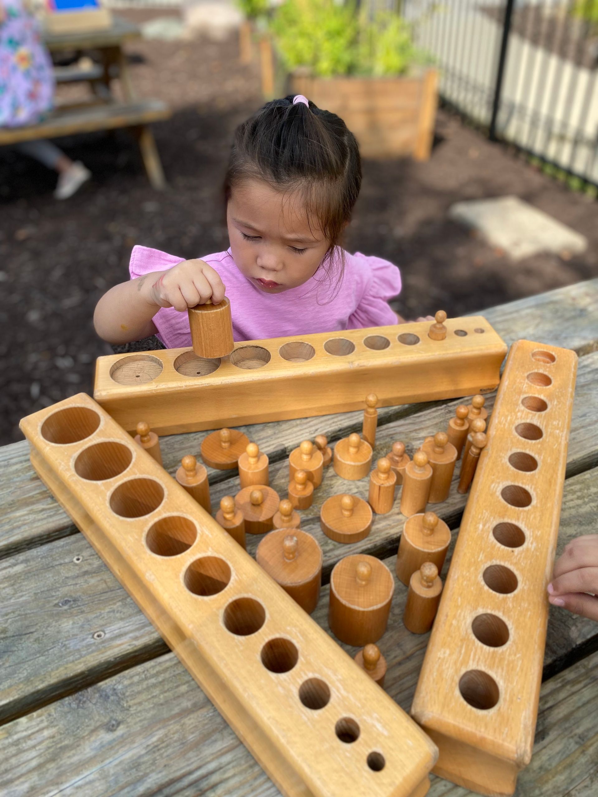 Sensorial materials are designed to help children refine their ability to perceive and categorize the world around them. Through activities that isolate specific senses—such as sight, touch, sound, and weight—children develop discrimination, order, and an awareness of patterns. These same skills are necessary for understanding mathematical concepts.