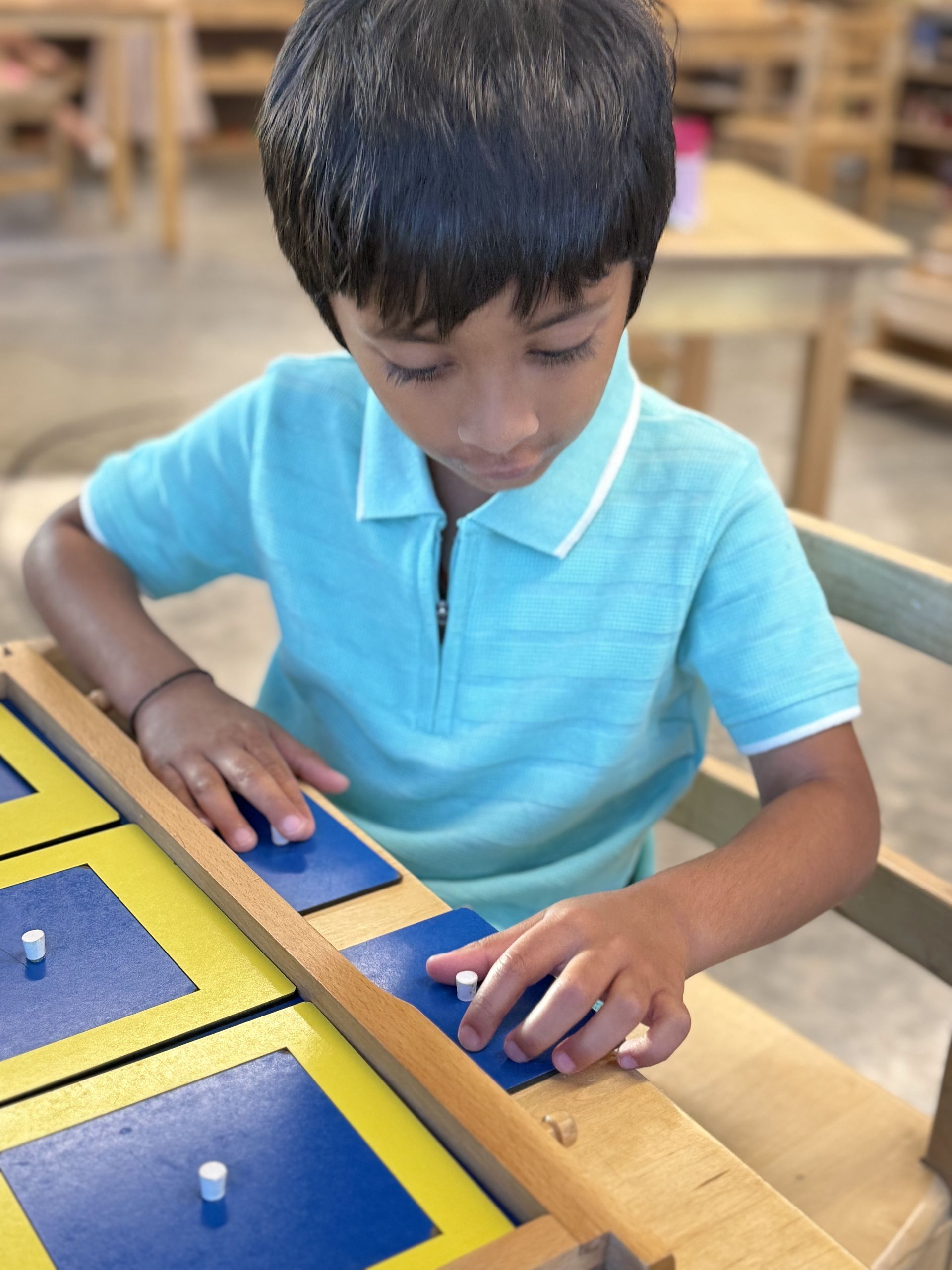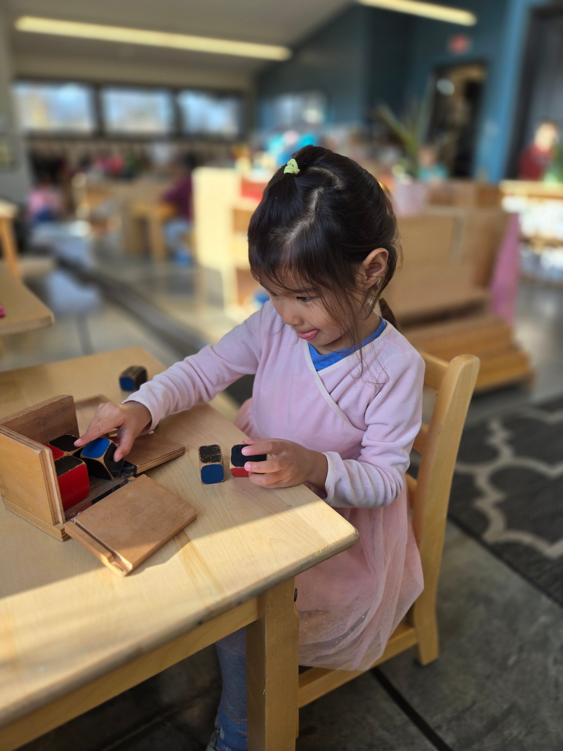 By working with Sensorial materials before moving into Math materials, children develop a concrete understanding of mathematical relationships rather than relying solely on rote memorization. The transition from manipulating physical objects to abstract problem-solving is smooth because the foundational concepts are already internalized through hands-on experiences. Montessori classrooms emphasize the idea that mathematics is not just about numbers. It's about patterns, relationships, and logical thinking. Sensorial materials prepare the child’s mind for this exploration, making math a natural extension of their early experiences.
