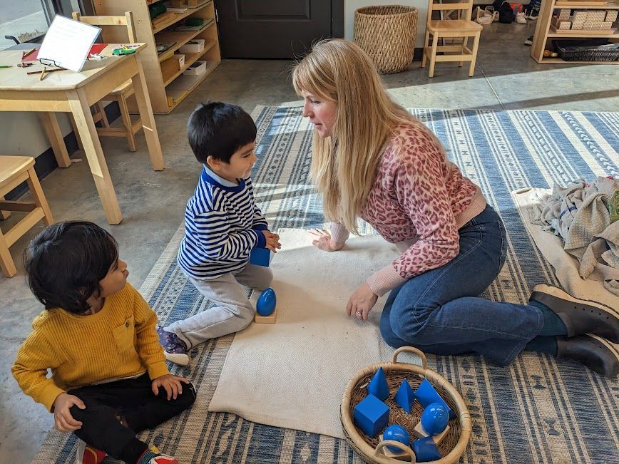 It's during the first plane of development that you may hear a Montessorian use the term, "Three Period Lesson". The Three Period Lesson is the way in which all vocabulary is introduced to a child during their primary years. This method of vocabulary presentation allows the adult to really understand what the child understands. The child is presented with three new pieces of vocabulary at one time. This could be a sound, color, continent, name of a fruit or sight word. We will use the primary colors as an example in this Three Period Lesson: