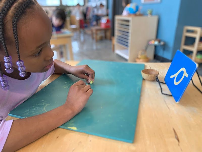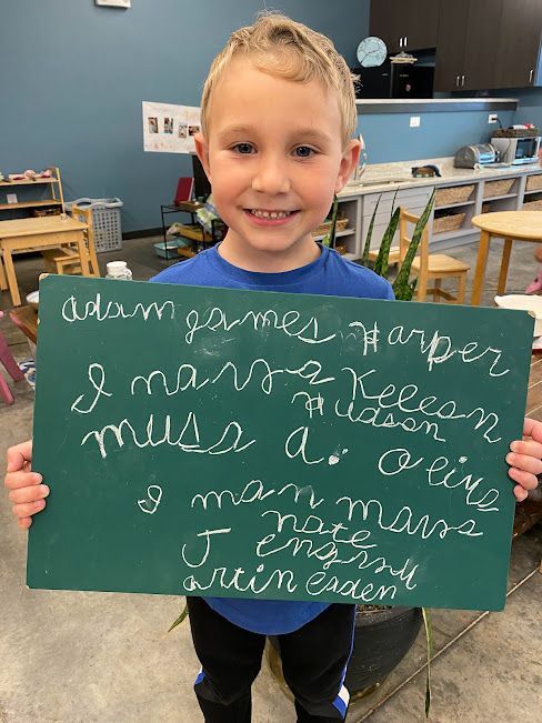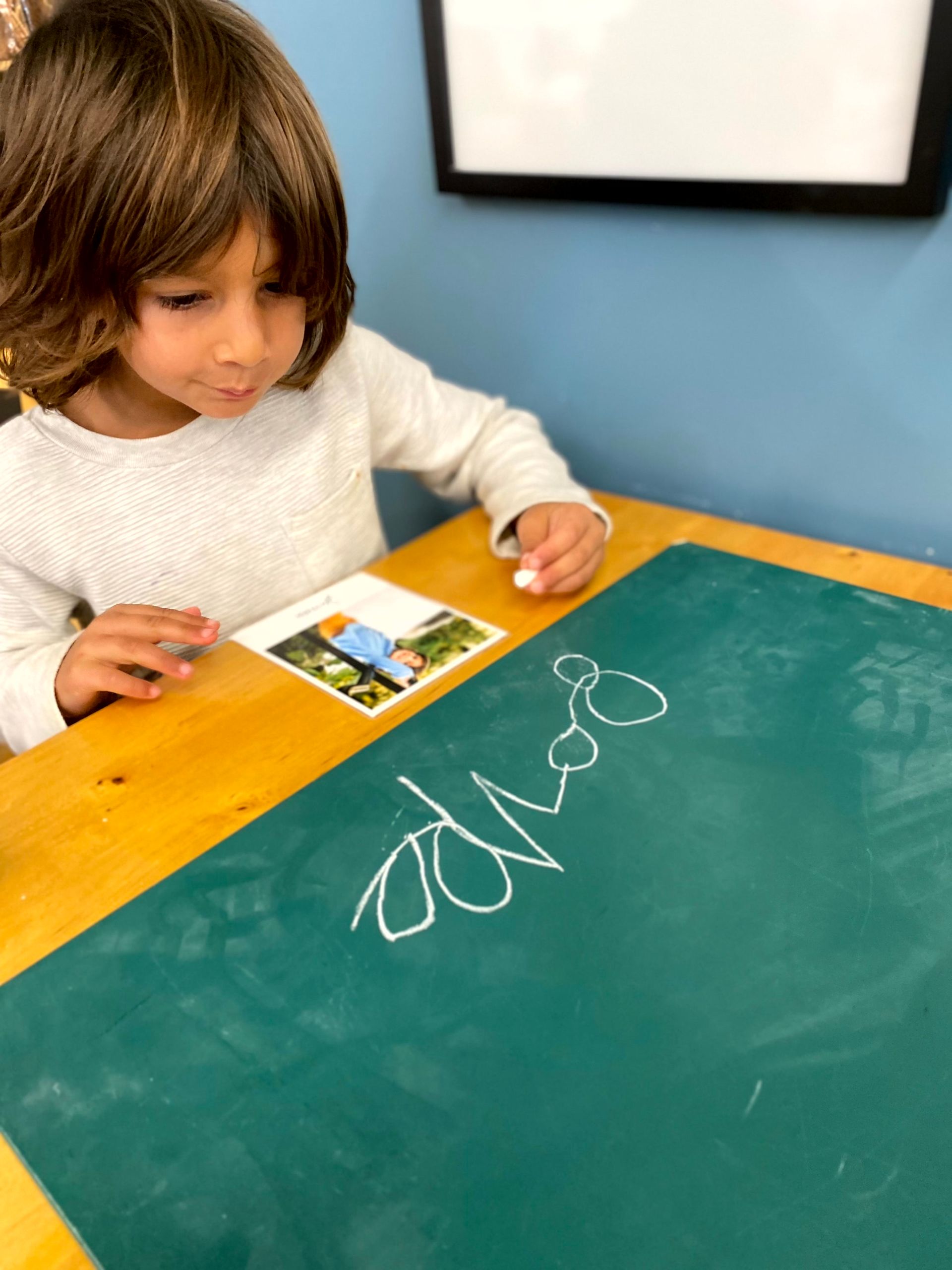By the time a Montessori student is 4 or 5 years old they begin writing joyfully because they are well prepared. Montessori schools typically focus on teaching children to write in cursive, even in the primary classroom. We have found that there are many benefits to emphasizing this style over manuscript/print writing.